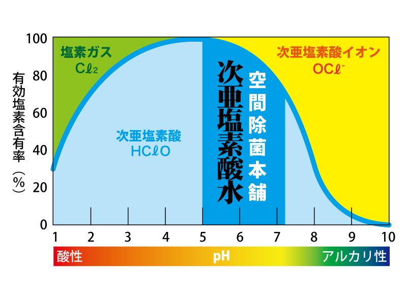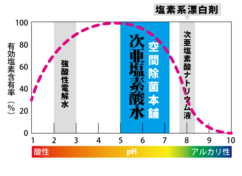 次亜塩素酸水は、pH5.0〜7.2の間。肌に触れても安心です。