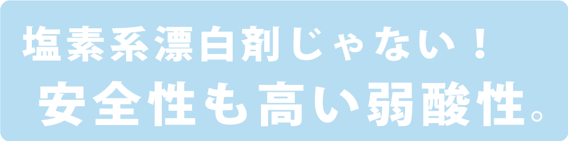 次亜塩素酸は体内の血中でも作られている成分です。次亜塩素酸の特性として、「pHが5.0〜7.2の水」に溶け込む事ができます。その特性を活かして、弱酸性の水と次亜塩素酸とで化合したものがやさしい次亜塩素酸水です。そのため非常に肌にもやさしく触れてもアルコールのような刺激はなく、さらに衣類に付着しても漂白される事はありません。