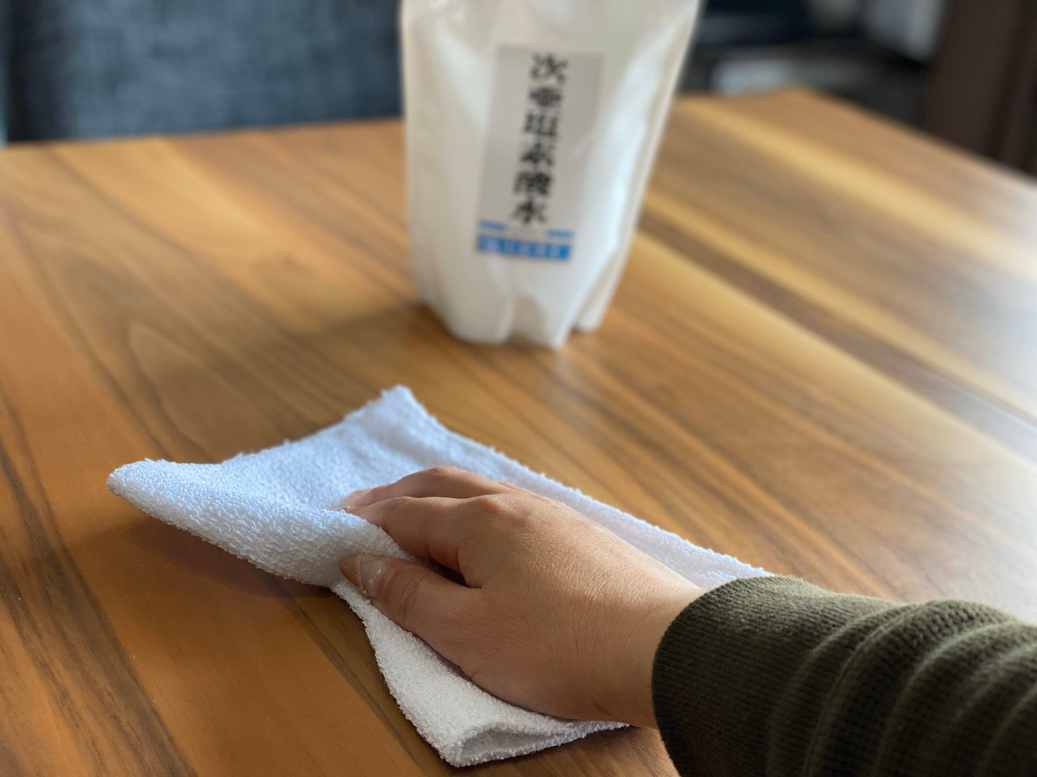 ※漂白剤として使われるものは「次亜塩素酸ナトリウム液」です。そちらはアルカリ性で、塩素系漂白剤の事を指しています。名前は似ていますが次亜塩素酸水とは異なります。